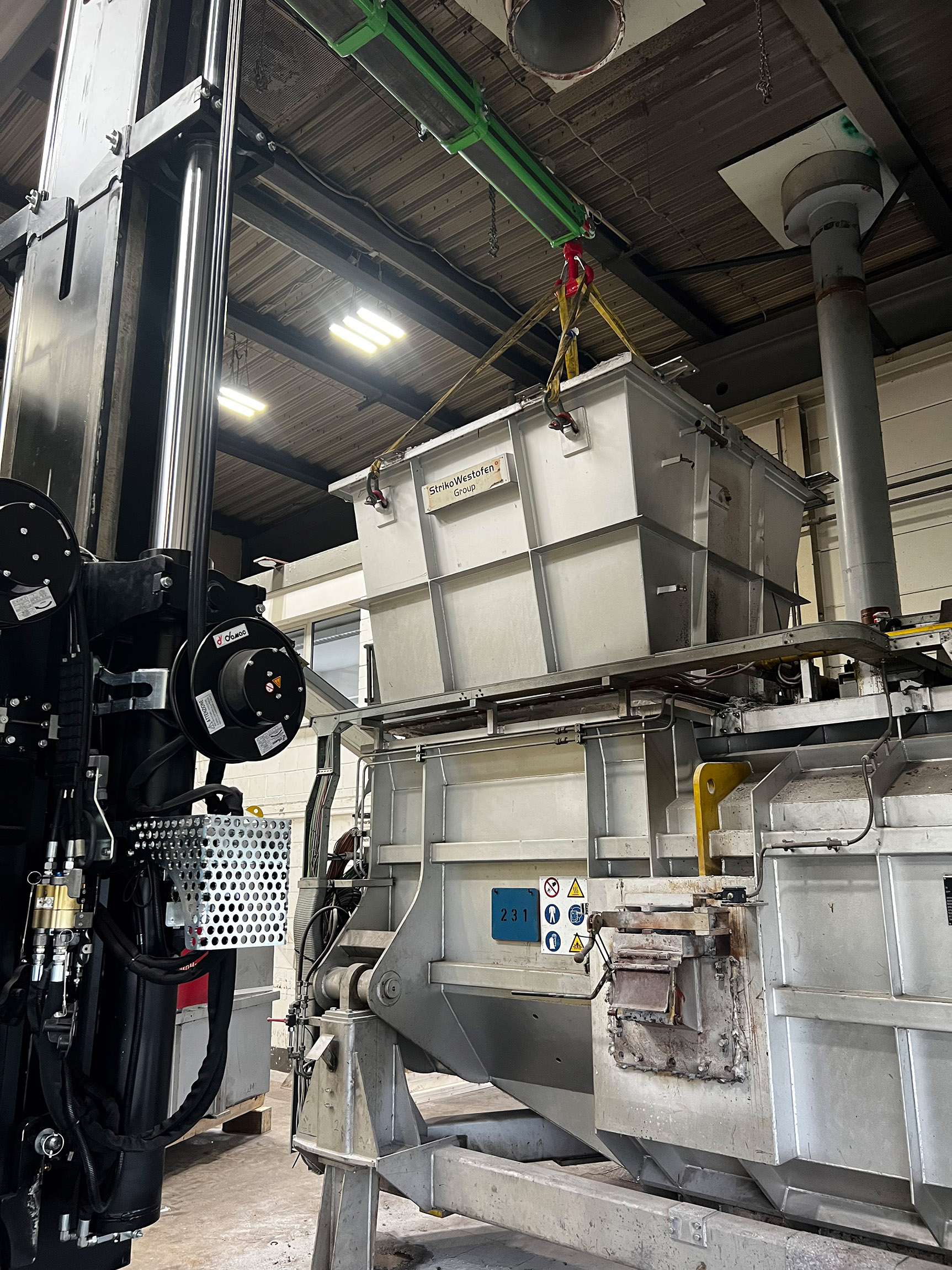 Nous avons le plaisir d'annoncer la vente réussie d'un four de fusion et de maintien StrikoWestofen MH-T 3000-1500 G-eg d'occasion. Le four était situé en Allemagne et a été démonté, emballé et chargé pour le transport de manière professionnelle par notre équipe de spécialistes expérimentés FISS. Grâce à notre expertise éprouvée dans la manipulation d'équipements de fonderie, l'ensemble du processus s'est déroulé de manière efficace et dans le respect des normes de sécurité les plus strictes.